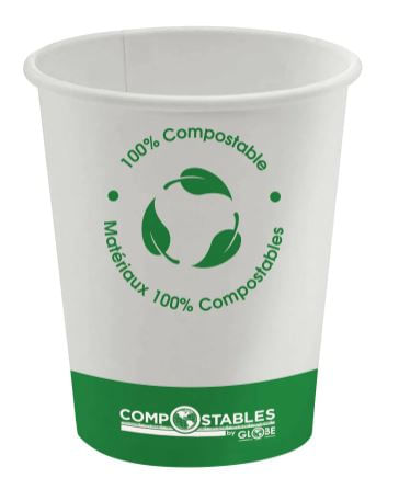 Eco-friendly cups lined with PLA, a corn-based bio-resin, offering a leak-resistant, non-toxic alternative to plastic and styrofoam. Perfect for serving coffee, tea, and hot beverages sustainably.