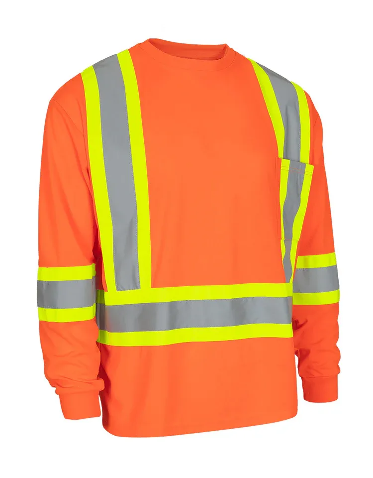 Hi-Vis L/S Tee w/Chest Pocket Orange X-Large